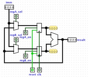 The above photo shows the 2022 CSMore cohort in front of Gates Hall, the home of Cornell Bowers CIS. The datapath for the "Femto-Processor" is shown on the right implemented using Logisim. The Femto-Processor supported two instructions (i.e., write immediate and add) and was capable of executing up to 16-instruction programs to do simple arithmetic and generate the Fibonacci sequence.